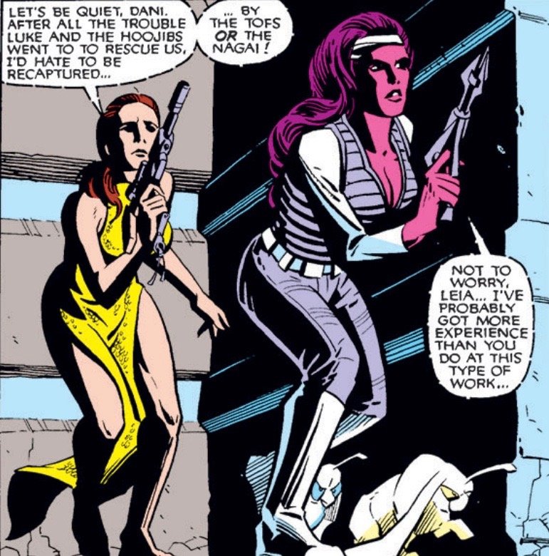 Dani was a thief, con artist, smuggler, and a member of the Rik Duel gang. She later joined the Rebel Alliance and was trained in part by Luke Skywalker. Her character has only appeared in Legends comics.