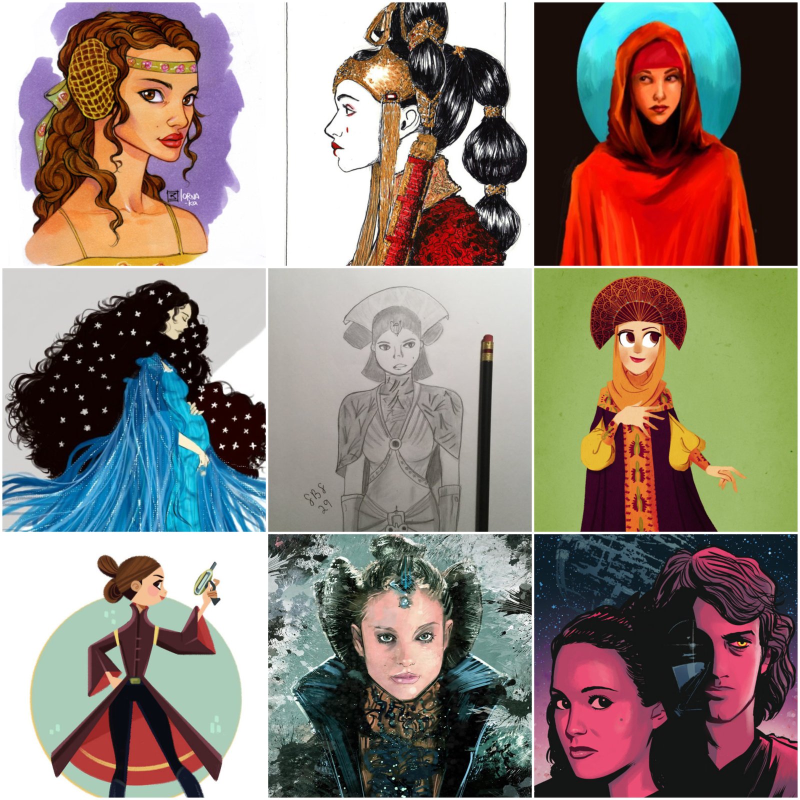 There is no shortage of fan art of Padmé Amidala from her disguise as a handmaiden in The Phantom Menace to her pregnancy in Revenge of the Sith. Padmé fan art can easily be found all over social media and I can’t get enough of it.