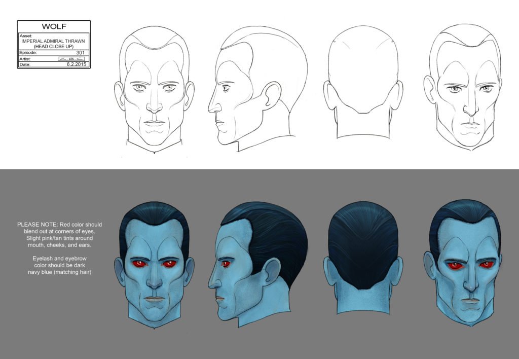 There have been a lot of highlights, (like working on Hera and the prototype AT-AT), but for me the greatest moment was getting to design Grand Admiral Thrawn. That character has a particular significance for me as a Star Wars fan. I remember going to a bookstore with my family on the day that Heir to the Empire came out, and then all of us fighting over who would get to read it first. I was beyond excited to get to design Thrawn for Rebels. The author Timothy Zahn came to see the episode while it was in early production, and I was able to meet him – and get his autograph on my original copy of Heir to the Empire.