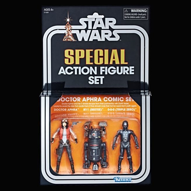 Here’s an Aphra three-pack that include a figure of Aphra and her droids 0-0-0 and BT-1.