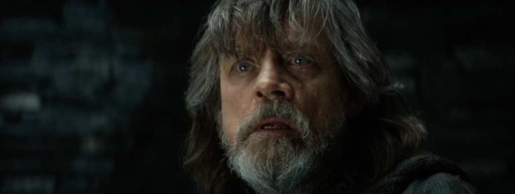 The shot that precedes Kylo’s first appearance is a close-up shot of Luke Skywalker.