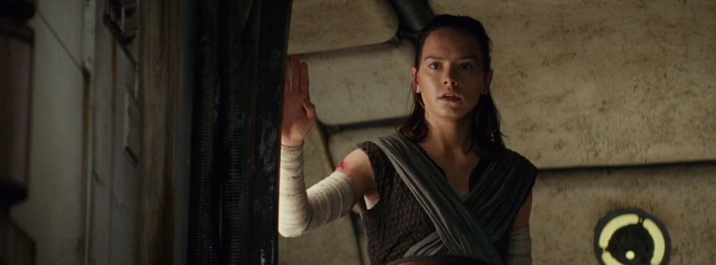 Finally, Rey with a decidedly determined look on her face closes the door to the Millenium Falcon which also ends this connection with Kylo.