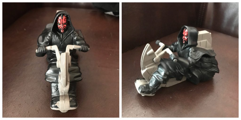 I have a bunch of fast food Star Wars toys and this Darth Maul is one of my favorites. It also scoots across the floor when you pull the black plastic thing I lost 10+ years ago out of the back of it.
