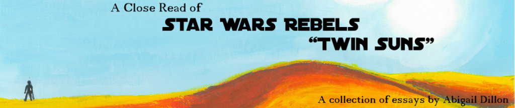 If you are a fan of Star Wars Rebels (or film/story analysis) and you haven’t read of any of Abigail Dillon’s close readings of the Rebels episode “Twin Suns” – you’re really missing something.