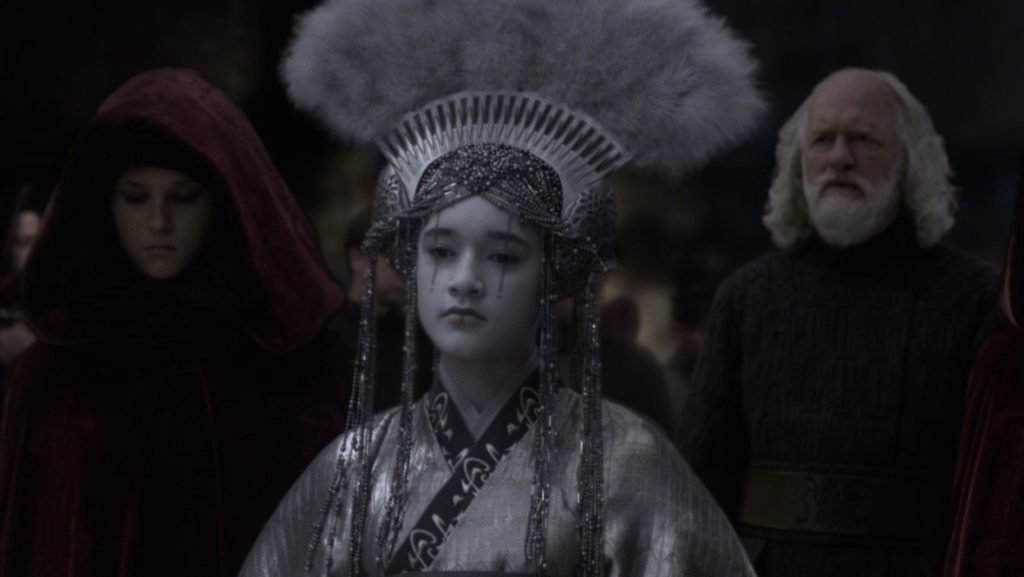 Queen Amidala was born Padmé Naberrie. Padmé was elected queen of Naboo when she was 14 years old (not an unusual age for Naboo queens) and took the name Amidala. Amidala’s time as queen is the first time in the Star Wars timeline where we have some solid dates. Her service began in the year 32 BBY (meaning 32 years before the Battle of Yavin). She remained queen for two consecutive two-year terms. Her people encouraged Amidala to change the Naboo constitution to allow her to run for a third term but she chose to not pursue that idea.