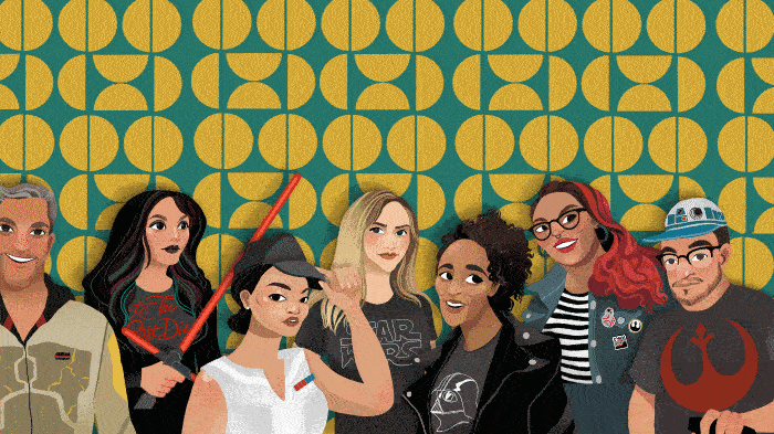 Back in the spring of 2017 I remember reading an article on The Mary Sue about the project. Even though I had loved Star Wars my whole life, I never really connected with anyone in the fandom other than a couple guy friends (plus the guy who is now my husband). I only had one female friend who liked Star Wars too, so I just assumed we were outliers and that other female Star Wars fans didn’t exist! When I saw not only that female and non-binary fans existed, but also Looking for Leia was shifting the lens to highlight them, I was completely amazed. I just knew I had to be a part of the project somehow and do whatever I could do help amplify these voices and stories.