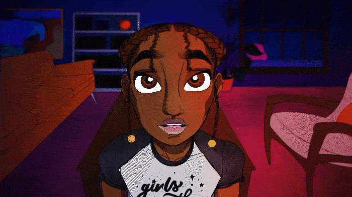 My favorite sequences to work on were probably Audrey Estok’s basement scene in “More Than the Basement” and Sierra Edd’s audience illustration in “What We Preserve”. Both these illustrations are absolutely gorgeous, and I thoroughly enjoyed finding ways to give them extra depth and life, while not going overboard and distracting from the original work. That balance is tricky but so satisfying when you figure it out. There’s a fun tool in After Effects that lets you make a digital camera and move it around a 2D scene, and we used that on both these illustrations. It’s my favorite thing. I loved working on these sequences and I adore how they turned out.