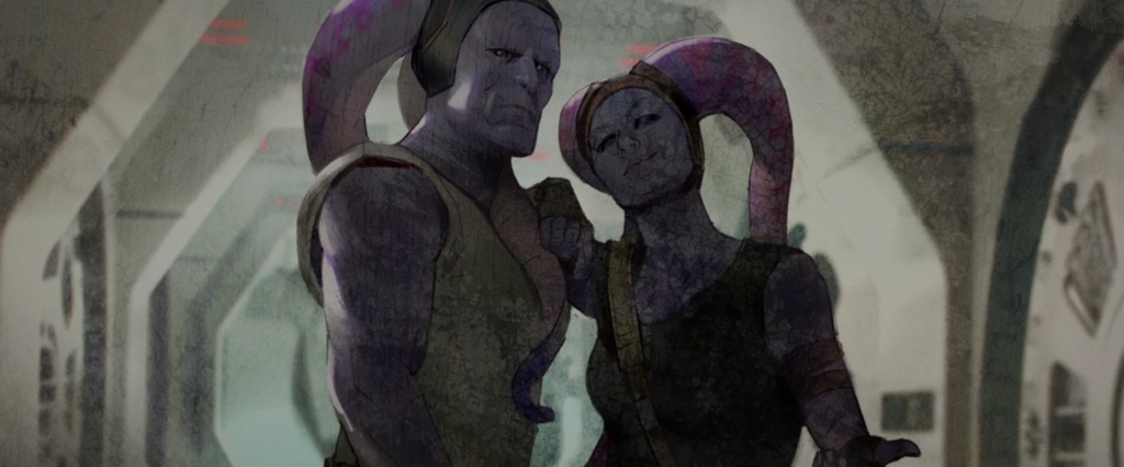 Xi’an and her brother Qin in The Mandalorian Chapter 6: The Prisoner. Concept art by Brian Matyas of Qin and Xi’an from the end credits of The Mandalorian Chapter 6: The Prisoner.