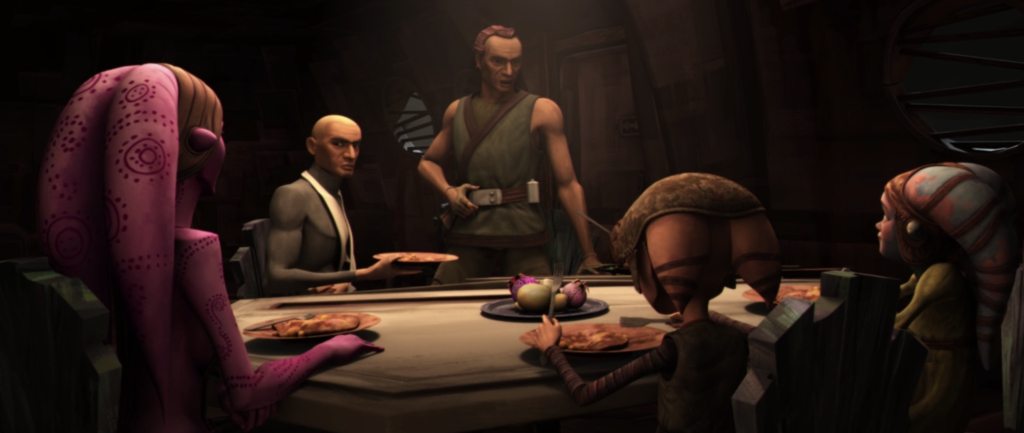 Suu, Captain Rex, Cut, Jek, and Shaeeah in “The Deserter.”Shaeeah and her brother Jek.