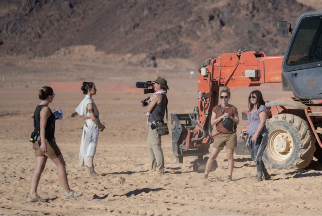 Our shoot team were the two camera ops, Will and Chin, and myself. We had two very talented shoot editors – Kate Coggins and Jeff Pickett – and two BFI trainees, Alex and Molly, who helped us no end. Chin has an amazing nose for story, and was incredible at working with the different workshops to keep up to date with their progress and show and tells with JJ. She also covered a lot of Vic Mahoney’s brilliant 2nd Unit. Will shoots beautiful on-set BTS, so he tended to stick with main unit, sometimes splitting off to cover departments. I was able to shadow JJ and HoDs in their process a lot – and they were incredibly generous about having us around and keeping up to speed with what was going on. The cast also!