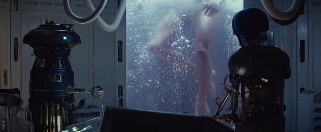 #33 We need to hear from someone who was in the carbon-freezing chamber. It could be the stormtrooper on the left that I think Chewie flings over the edge shortly after this moment or the jerk stormtrooper on the right who breaks apart Leia and Han’s kiss.