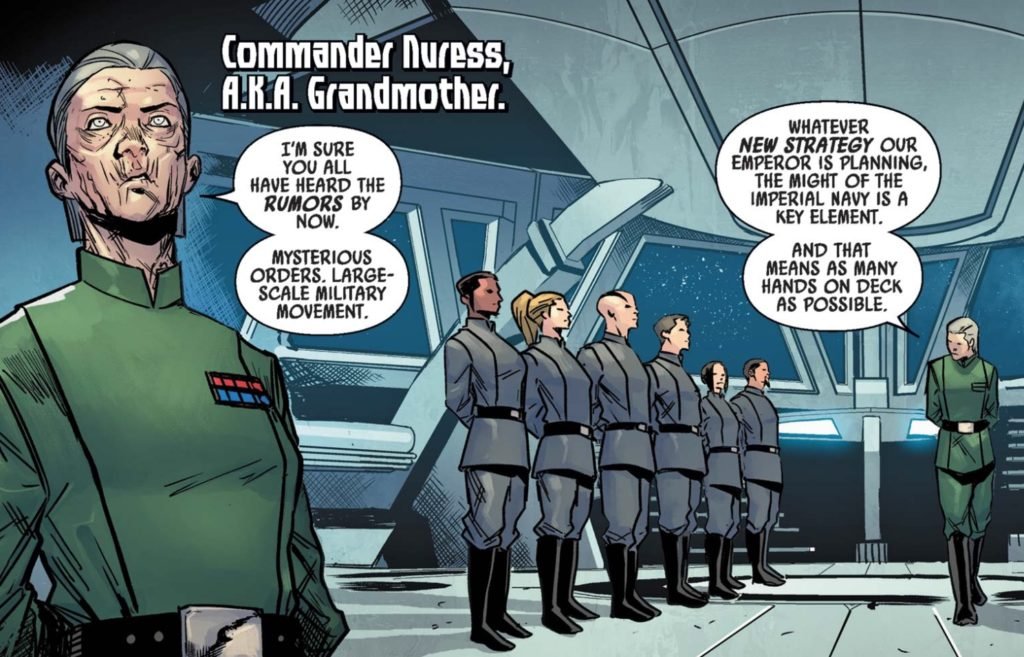 Nuress served in the Clone Wars with the Republic Navy before the Galactic Empire came into power. Don’t let the “grandmother” nickname fool you. Nuress was a force to be reckoned with. She appeared in the comics series TIE Fighter and the book Alphabet Squadron.
