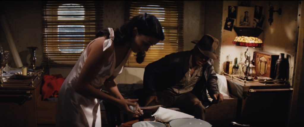 Marion refers to herself as having been a child when she fell in love with Indy and tells him he knew the relationship was wrong. She also refers to her now-deceased father as having drug her around the world and references now being stuck where she is. I find all of this intriguing because the creators of Raiders very intentionally didn’t give us a pretty princess in a sparkly dress trapped in a castle by a bad man for Indy to “save”, but they did give us a woman trapped in her circumstances because of her past interactions with the men in her life.
