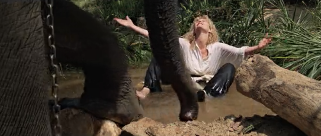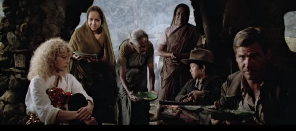 I like how Willie argues with Indy, isn’t afraid or intimidated by him, and is focused more on her comfort and survival than immediately swooning over Indy. I also think it’s hilarious that even though Indy spends a good portion of the beginning of the film wanting her to shut up or get out of his way the second she puts on a pretty outfit and they have a moment to breathe in the film Indy starts flirting with Willie like he just bought her a drink at a bar. But I’m getting ahead of myself.