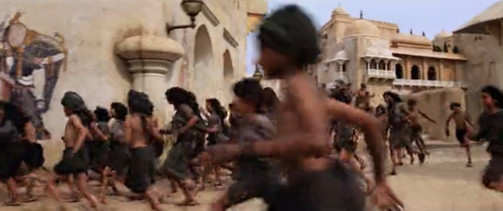 Inside the creepy sacrifice temple it’s a female-free zone. Which tracks as women don’t do super weird stuff like this. Even in fiction. I always thought it was odd in the scenes with the child slaves that you can’t see any of the abducted girls. Where are they? But I wonder if there are some girls in these indoor scenes and it’s just not obvious. Girls are more obvious in the scene where the children escape the palace.